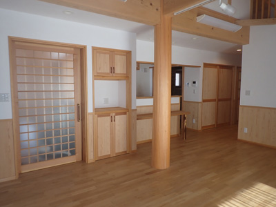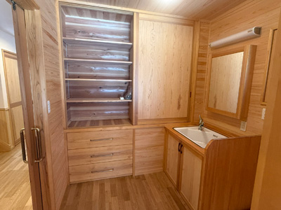 | 収納もたっぷり | サッシは木製のペアガラス、お高級です | |