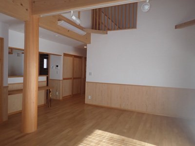 | 1階リビング 15.5帖、吹き抜けです。 | ||