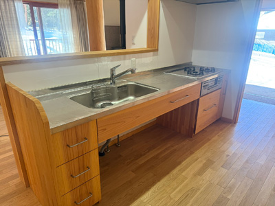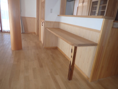 | 台所です。大工さんが作った造作のキッチンです。背面には収納たっぷりです。 | ||