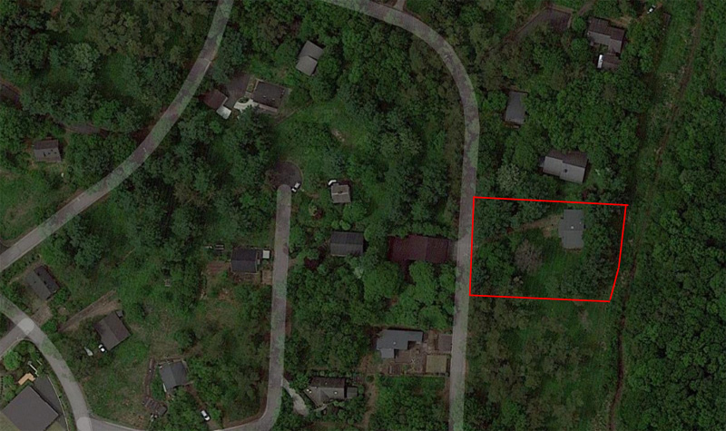 | 建物の西側、玄関とガレージが見えます | 建物の東側、寝室と風呂の窓が見えます | |